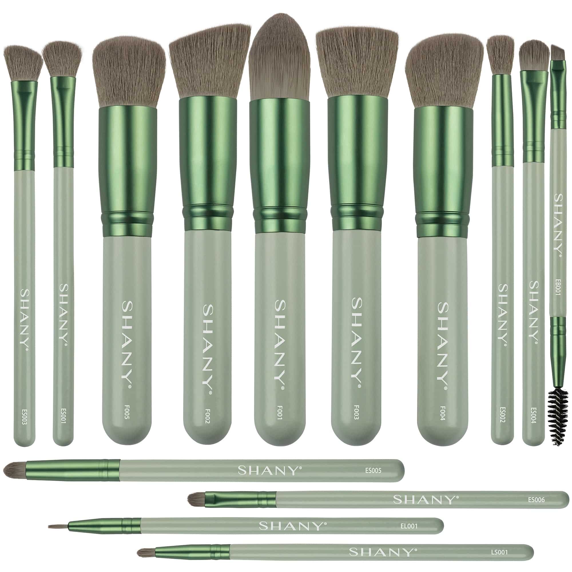 Listen up, bombshells! SHANY Bombshell Brush Set can easily transform your makeup collection with their beautiful charcoal tones. This 14-piece brush set is made with professional grade synthetic bristles with a gorgeous ombre design, that are curved for all face shapes. This wooden cosmetics brush set includes eight eye brushes, five faces brushes and one dual-ended brow brush. Use with ease as the cruelty-free brushes include an instructional pamphlet with brief descriptions on how to use every brush. Designed in the USA, these brushes are best paired with our Detox Professional Brush Cleanser.