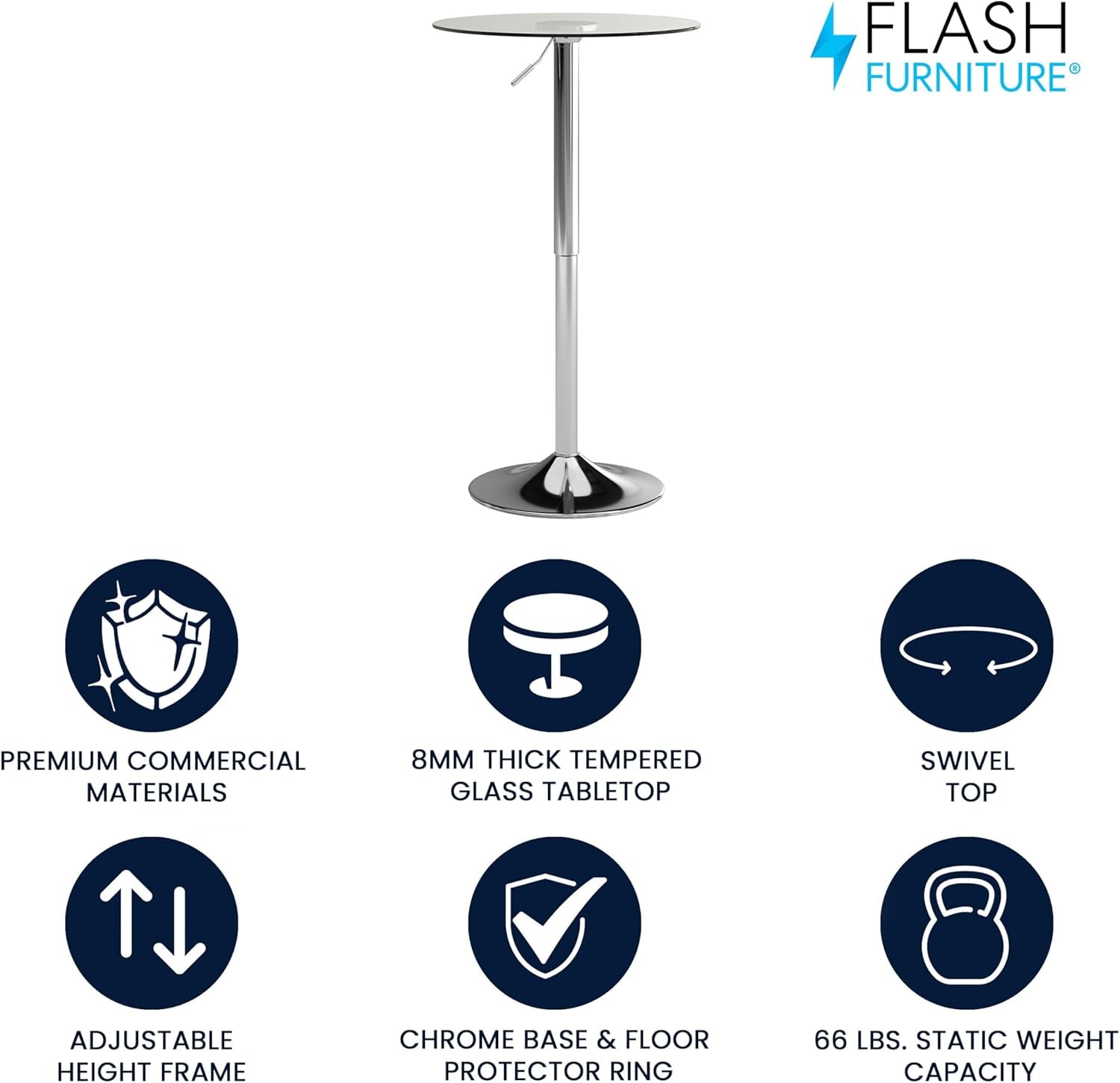 Transform casual gatherings and professional events with a sleek, adjustable round glass cocktail table that fits your space and elevates every moment. The 23.5-inch round design, 8 mm tempered glass top, and contemporary chrome base blend seamlessly with any décor—from chic lounges to home entertaining.