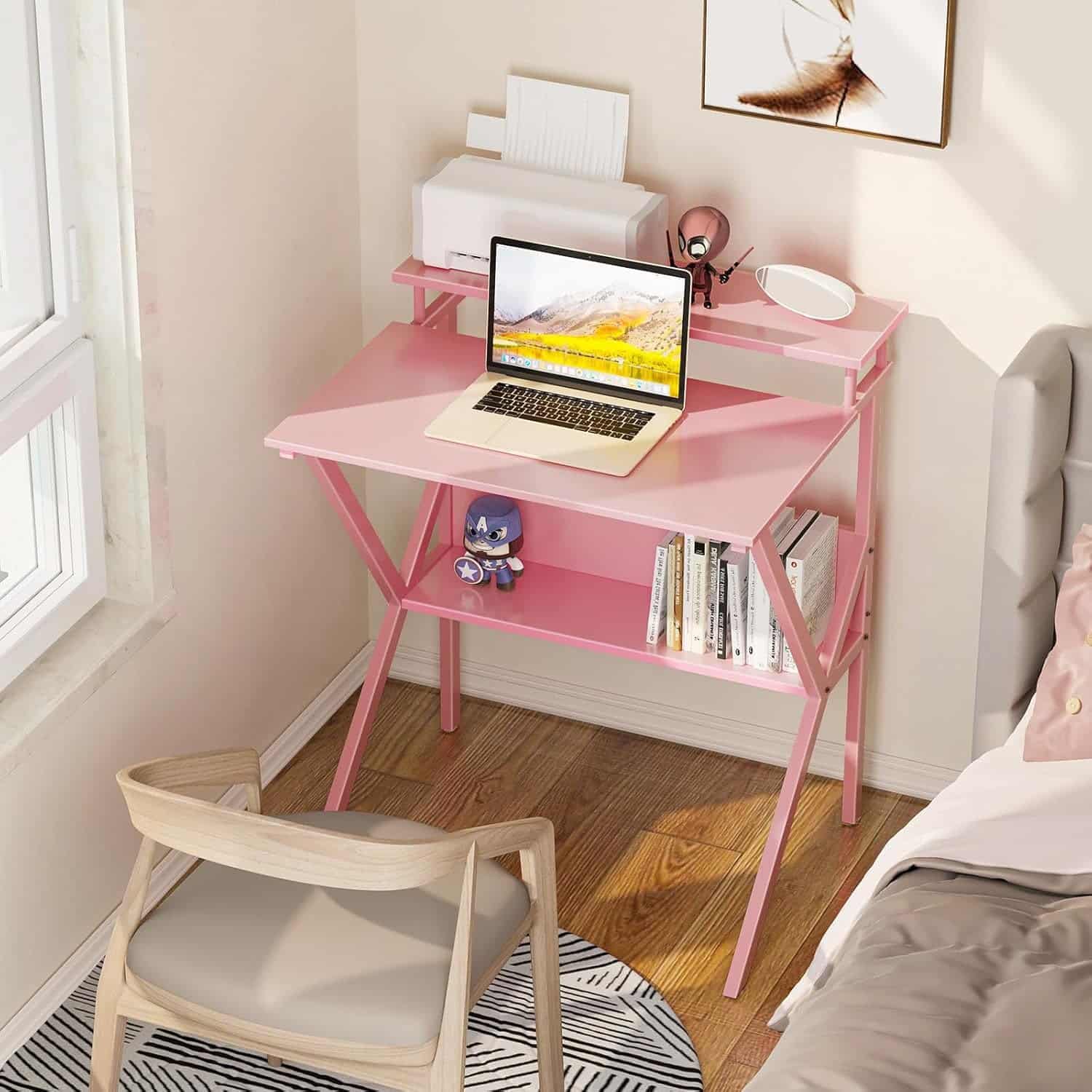 Maximize small spaces with a stylish, compact pink desk crafted for home offices, study nooks, and dorm rooms. This 27.5-inch small desk combines a dedicated monitor stand with built-in storage to deliver an ergonomic, clutter-free workspace without crowding your room.