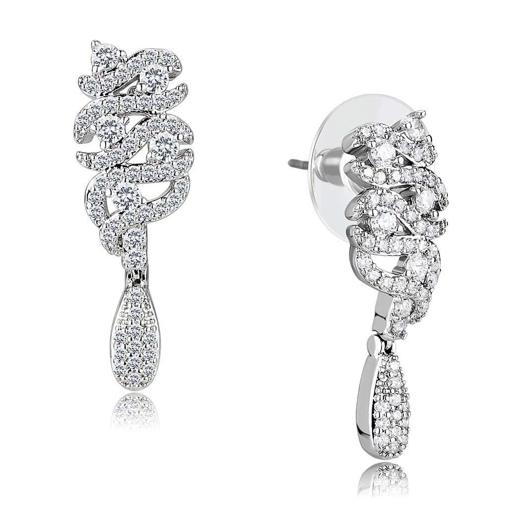 3W1413 – Rhodium Brass Jewelry Sets with AAA Grade CZ in Clear
