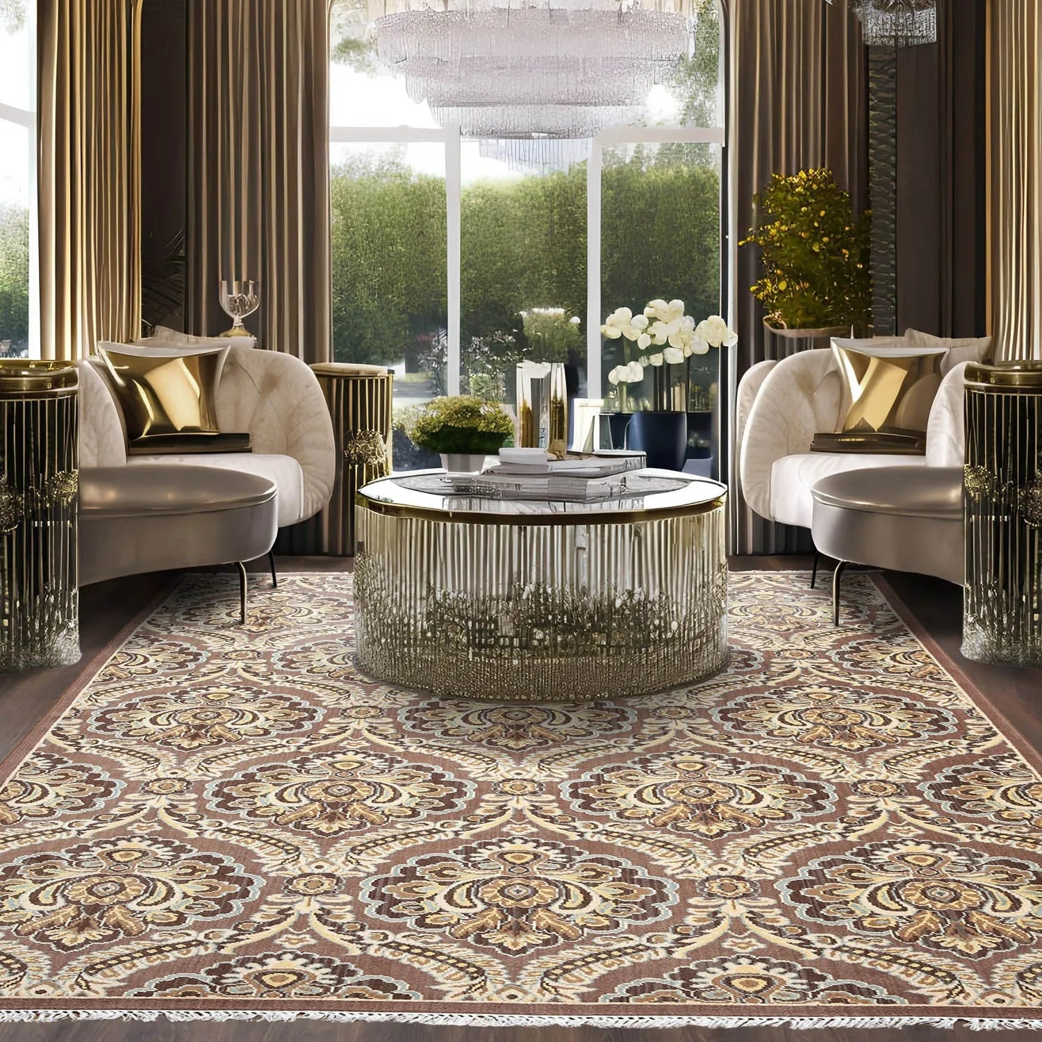 This is a beautiful 6’x9′ Light and Dark Brown, Aqua, Beige, Gold, Multi Color Machine Made Karastan Look and Quality Persian Oriental Wool Rug. Its elegant style is easy to decorate with and perfect for living room, dining room, bed room or anywhere in t