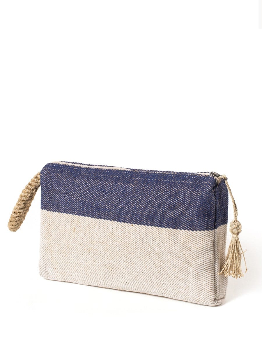 Playful colors with soft jute-cotton fabric with oversize macrame accent handle and zipper enclosure, this clutch makes the perfect go-to accessory when you are on the go.