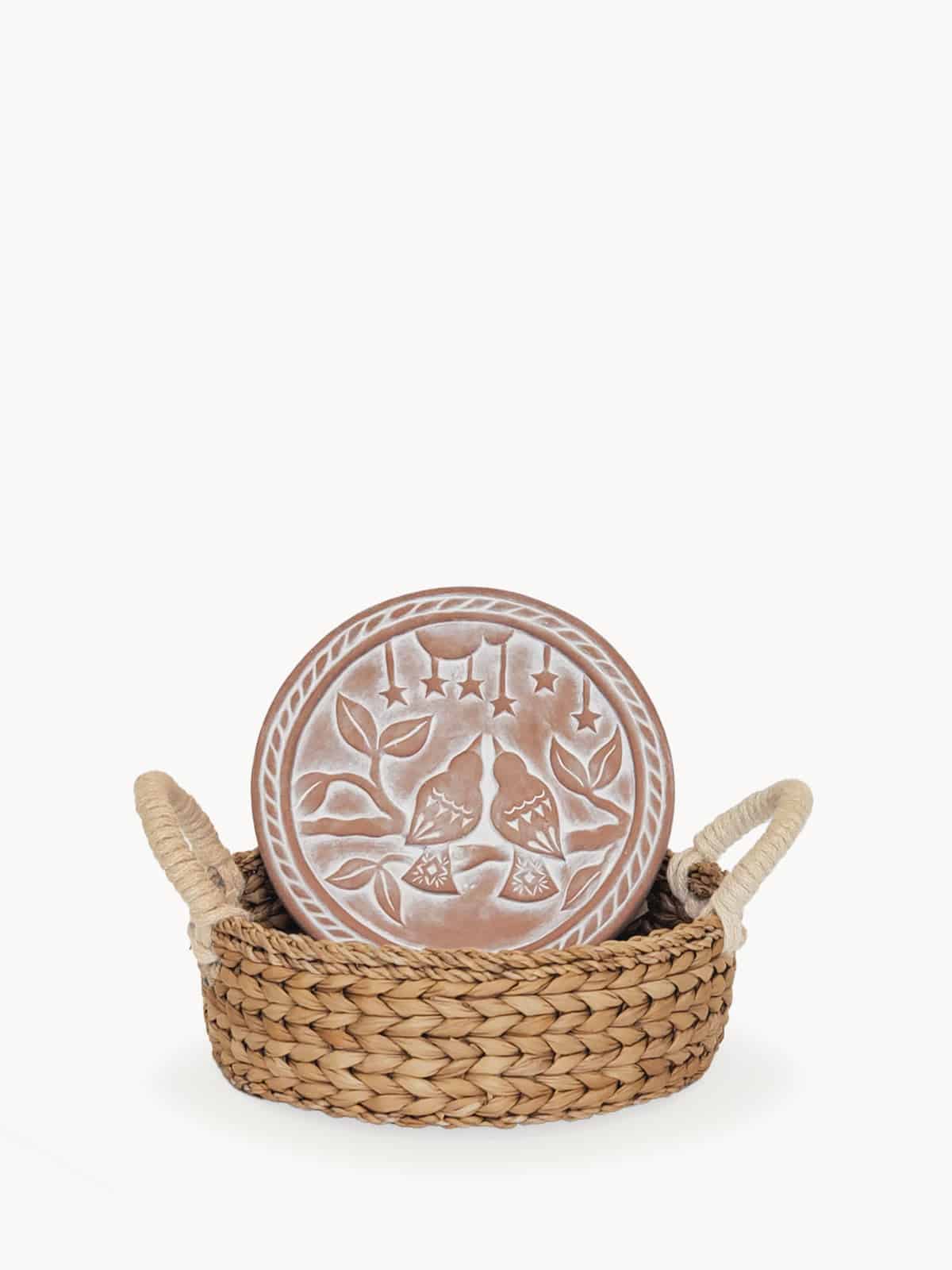 There’s nothing quite like the smell of warm bread on the weekend. Here, our terracotta plate has been engraved with lovebirds and cut to fit neatly into a round basket. This special bread warmer is naturally insulating, and the basket itself has been handwoven from sustainably grown seagrass. It’s the best gift item for anyone who loves bread!