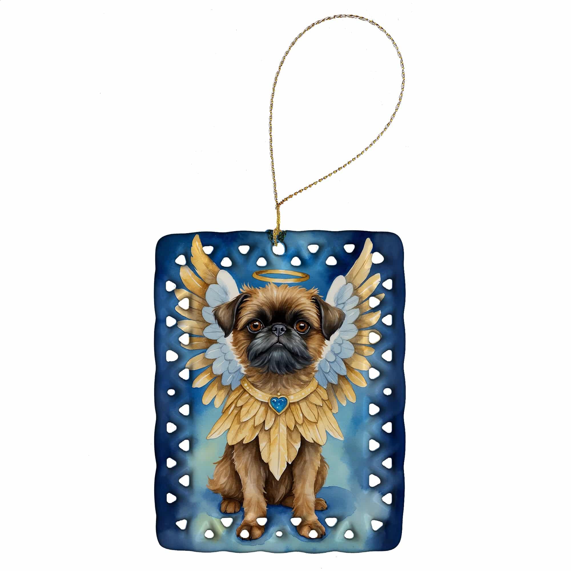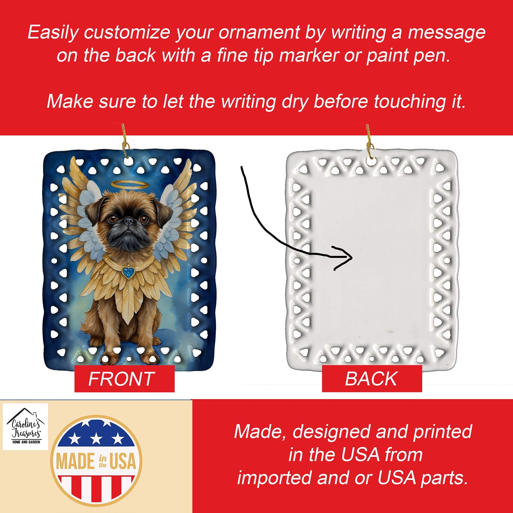 Porcelain Ornament featuring breed specific Brussels Griffon artwork. Celebrate Christmas with this Christmas Ornament. Add a unique, personal touch to your holiday decor with our Rectangular Lattice Porcelain Ornament. Perfect for creating cherished memories, this high-quality ornament shines under festive lights, reflecting warmth and joy throughout your Christmas tree. Crafted with a glossy finish, it showcases vibrant, full-color artwork contributed by our talented artists, ensuring your tree is adorned with a burst of color and holiday spirit. What sets this Porcelain Ornament apart is its customizable white back. Use a paint pen or permanent marker to write a heartfelt message, commemorate a special year, or mark an unforgettable date, turning this ornament into a keepsake that will be treasured for years to come. For best results, allow any personalization to dry thoroughly before handling. Each ornament comes complete with a delicate gold cord, making it easy to hang and display. Proudly made in the USA, this ornament measures 3.375 x 2.625 inches and is a thoughtful gift for pet sitters, teachers, family members, or anyone who would appreciate a little extra holiday magic. Bring style, charm, and a touch of personal meaning to your Christmas tree with this beautifully designed ornament..