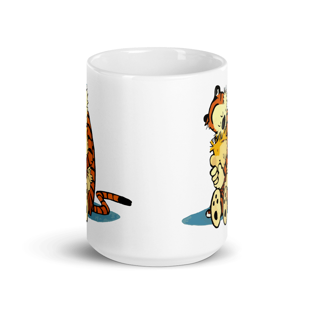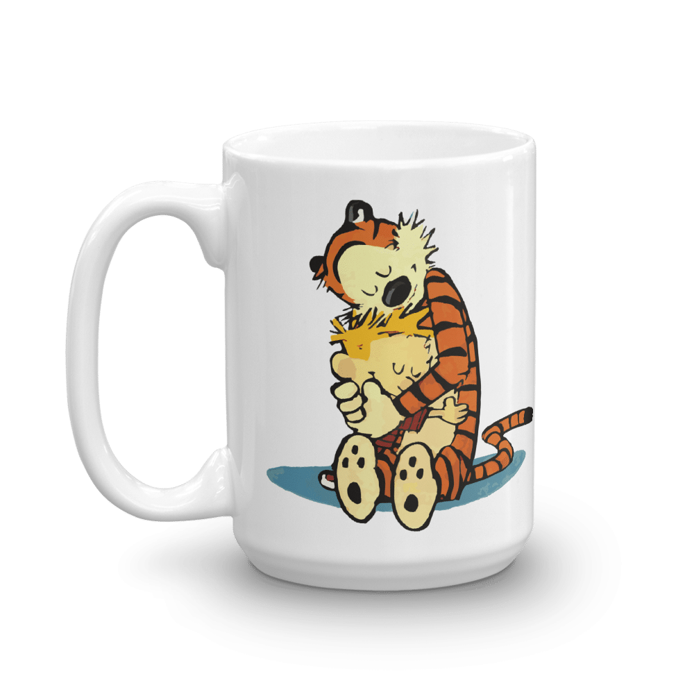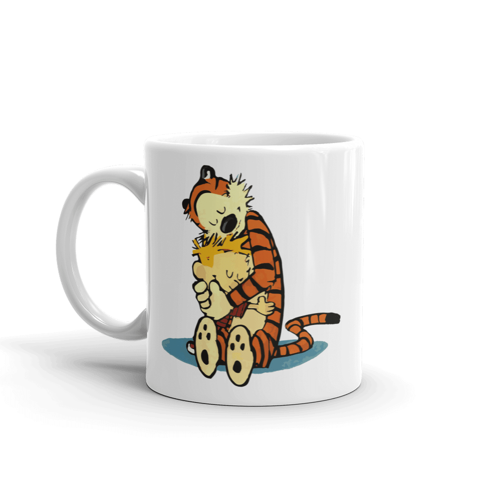 This cute mug shows our beloved duo hugging! Calvin, the precocious, mischievous, and adventurous six-year-old boy, and Hobbes, his sardonic stuffed tiger was a daily comic strip commonly cited as “the last great newspaper comic”. It was created by the cartoonist Bill Watterson and has enjoyed broad and enduring popularity, influence, and academic interest.