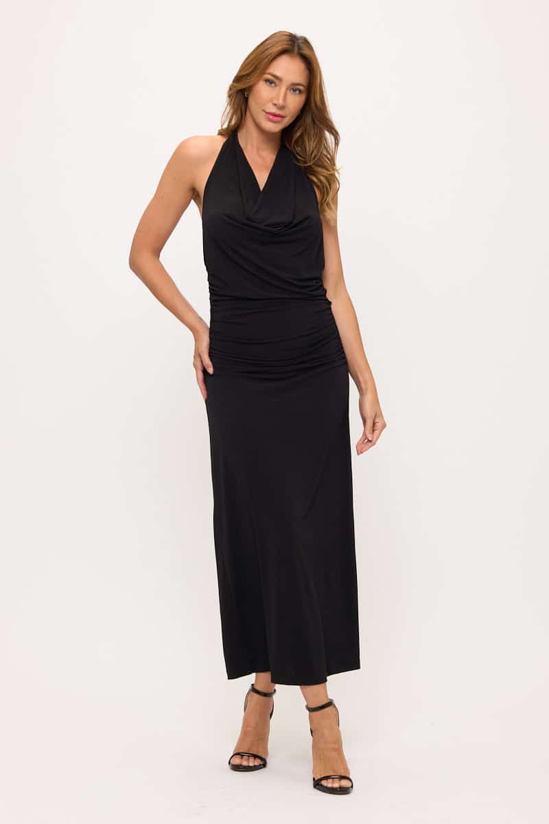 Made in USA Halter Jersey Maxi Dress w Ruched Back