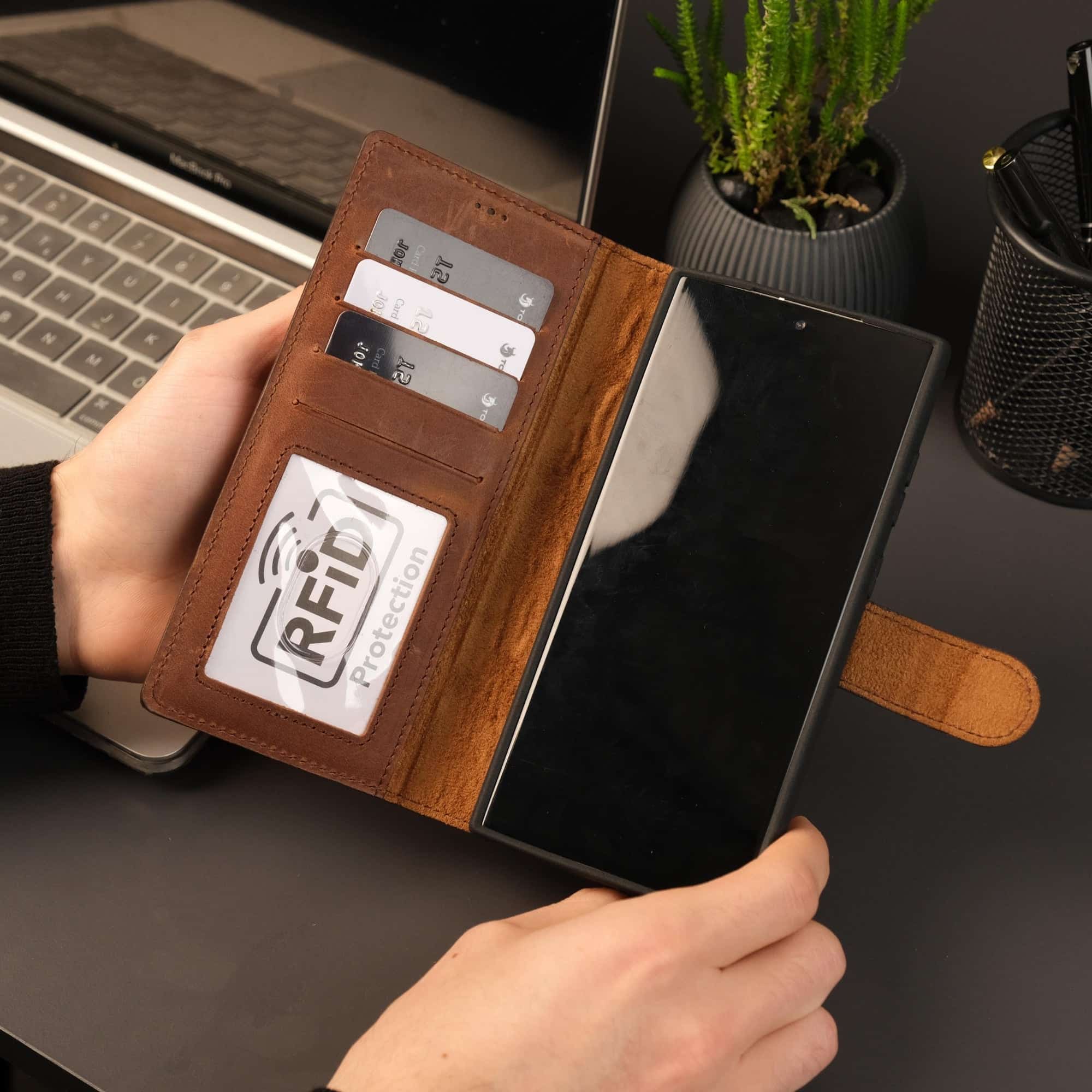 The TORONATA’s Buffalo leather wallet case for Samsung Galaxy S25 Ultra will help you look better.