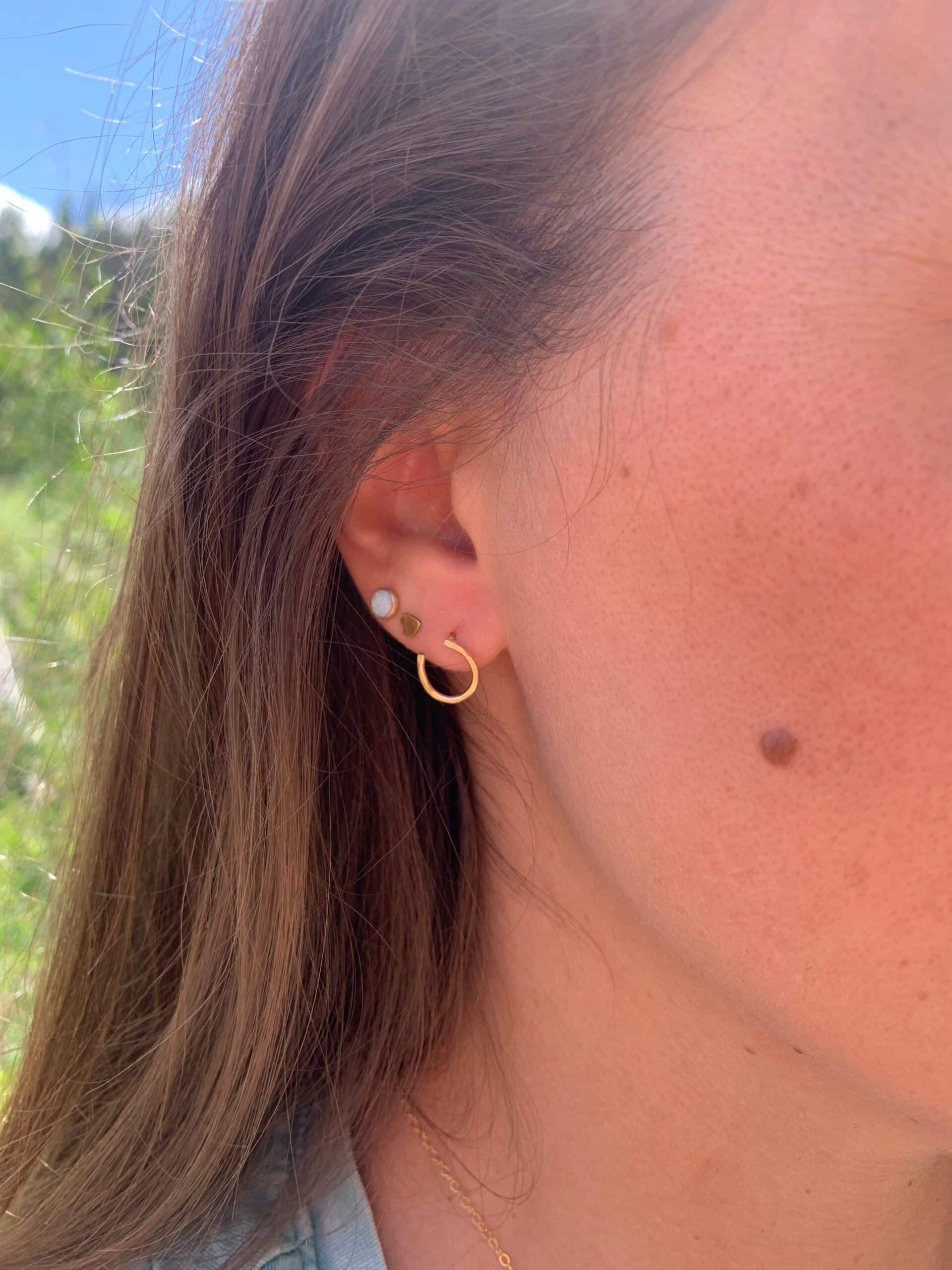 These cute little horseshoe stud earrings are a part of The Ranch Collection: A classic, American collection inspired by the western culture of cowboys, horses, and the spirit of the great Wild West. These “Lucky Horseshoe” stud earrings are made using 18 gauge wire that is hand formed and hammered, and they measure approx 9mm across. They are sweet, classic everyday earrings.