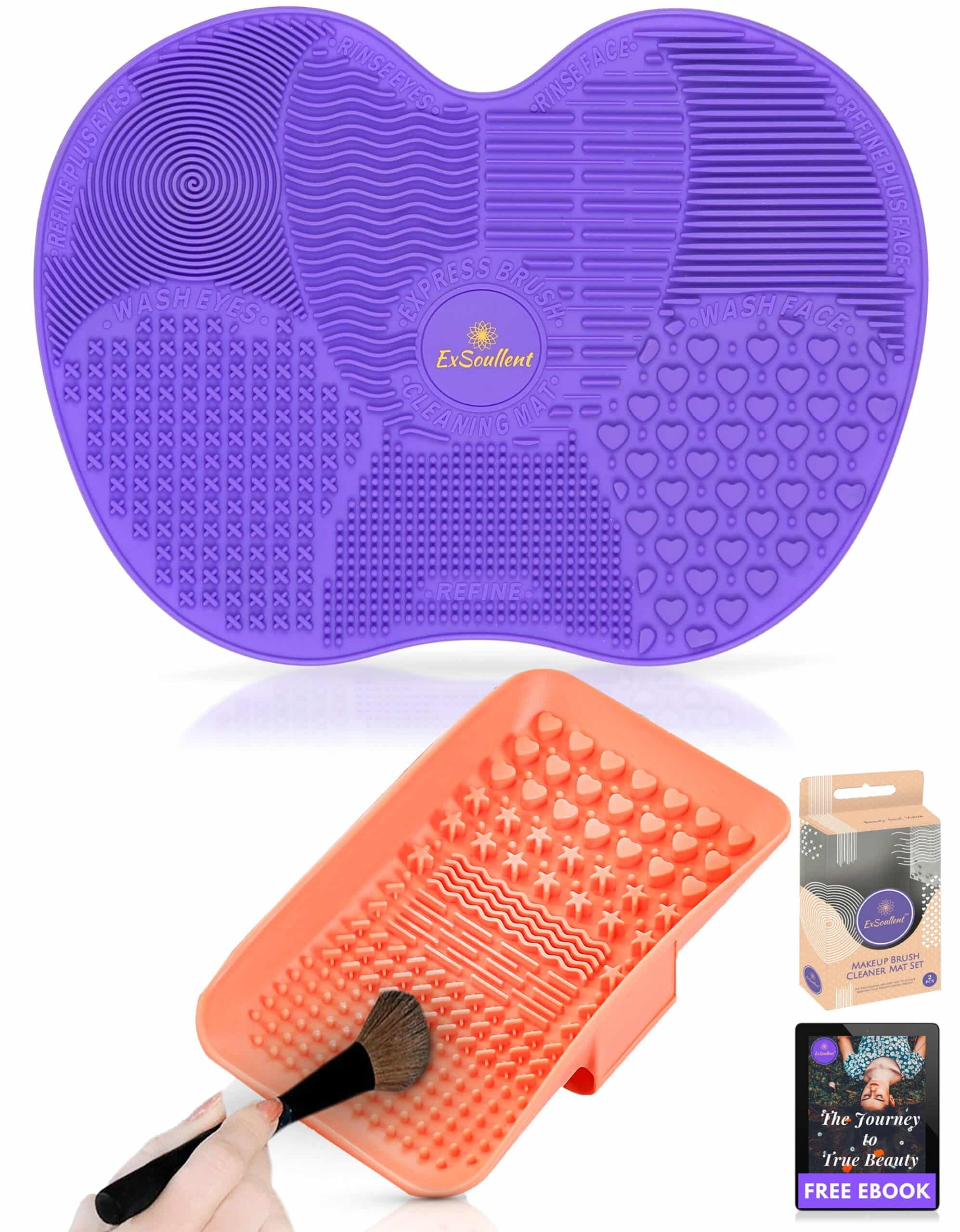💜 MAKE CLEANING BRUSHES FUN AGAIN – Do you put off cleaning your makeup brushes? Would you like a more portable & efficient way to clean them? ExSoullent Makeup Brush Cleaner Mat Set is the PERFECT solution! Our professional cleaning tools are super easy to use and will make all your dirty brushes squeaky clean in minutes. Now you can enjoy department store quality at half the price !