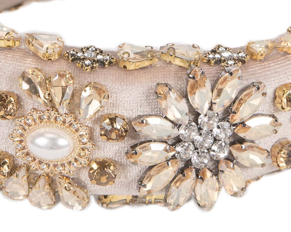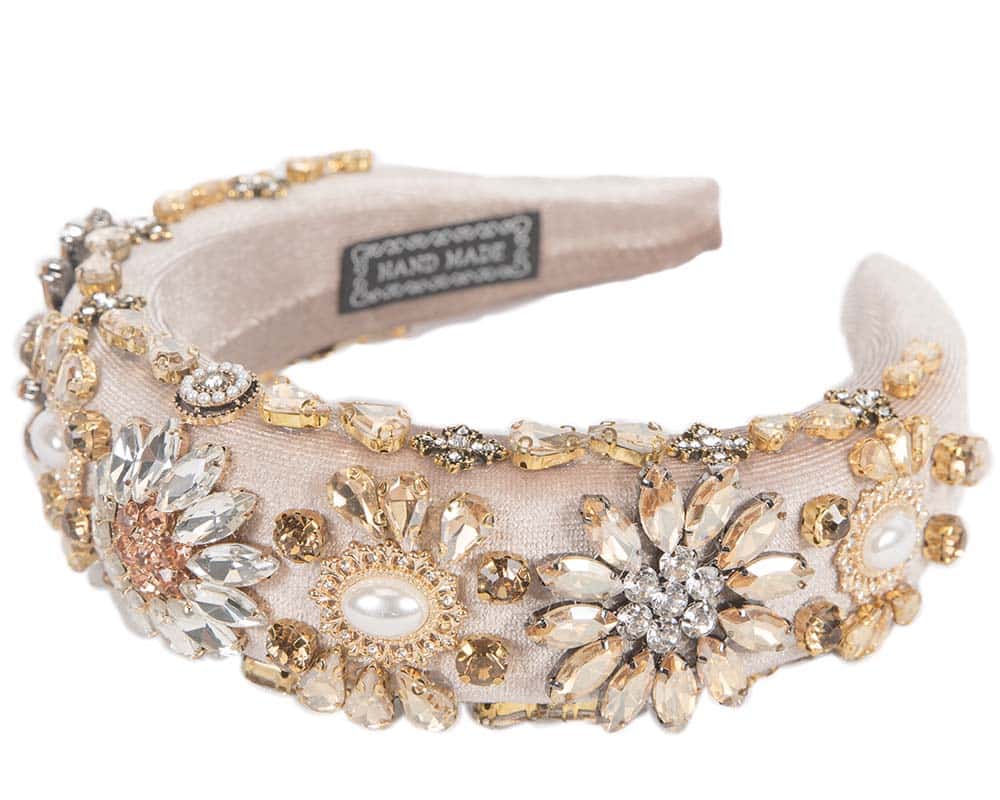 Nude jewelry fascinator headband by Cupids Millinery. Thin headband covered in hand-made flowers.