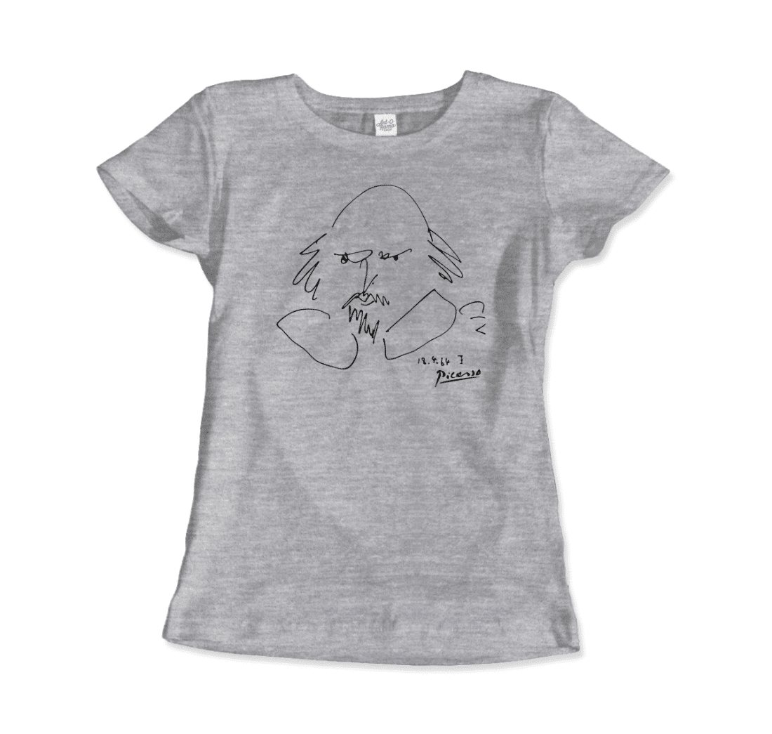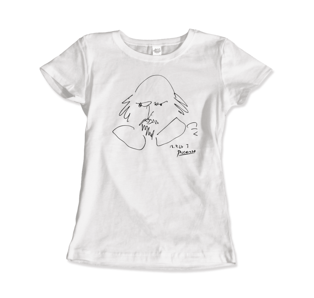Celebrate the fusion of art and literature with this unique design showcasing Picasso’s bold interpretation of William Shakespeare. A timeless meeting of two creative giants, this t-shirt is perfect for art enthusiasts, theater lovers, and anyone who treasures the genius of imagination and expression.