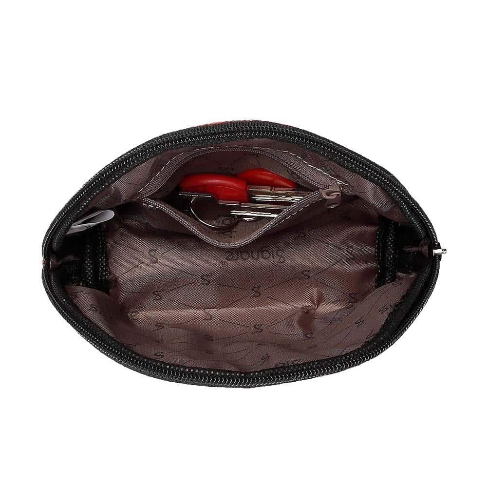 Compartment makeup case compactly designed to store cosmetic accessories.