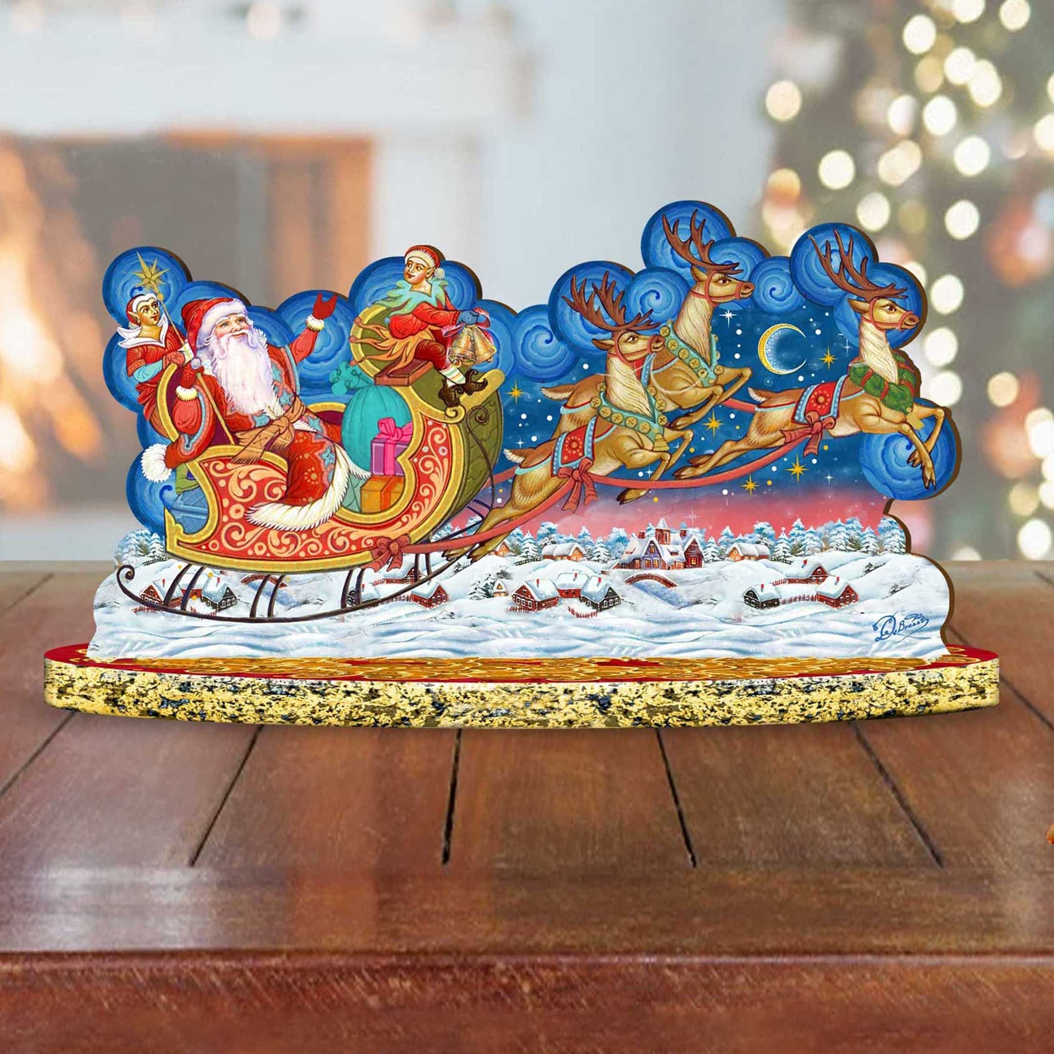 Experience the magic of Christmas with our Santa Sleigh Ride Wooden Decor Centerpiece! Handcrafted by G. DeBrekht, this tabletop decoration features a beautifully detailed Santa sleigh and reindeer, perfect for adding a festive touch to your home. This charming and unique Christmas decor brings the season’s spirit into your space.