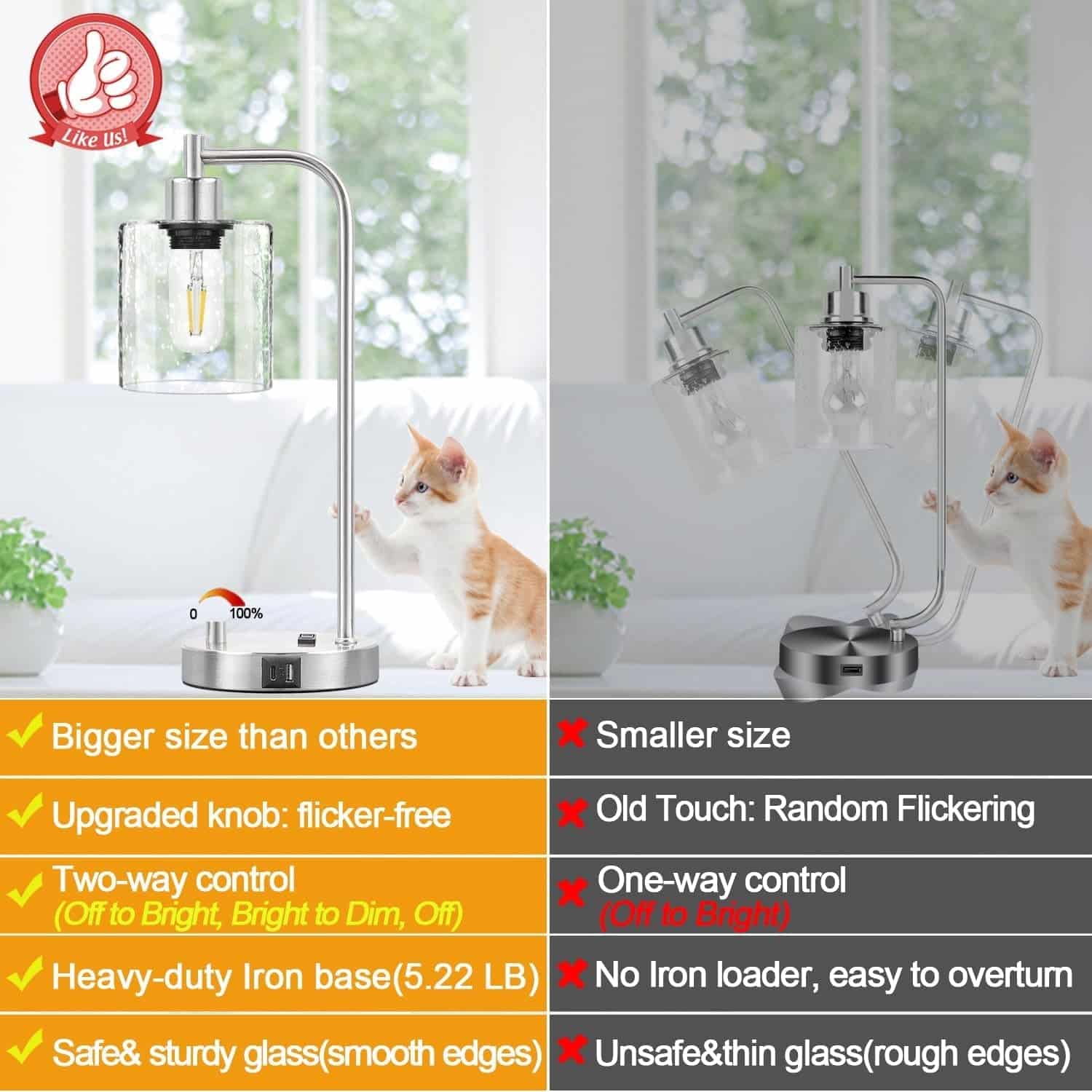 These bedside lamps blend rugged industrial style with everyday practicality. A heavy-duty metal base and anti-skid pads keep them steady, even in lively homes with kids or pets, while the glass shade softens and diffuses light for a comfortable glow.