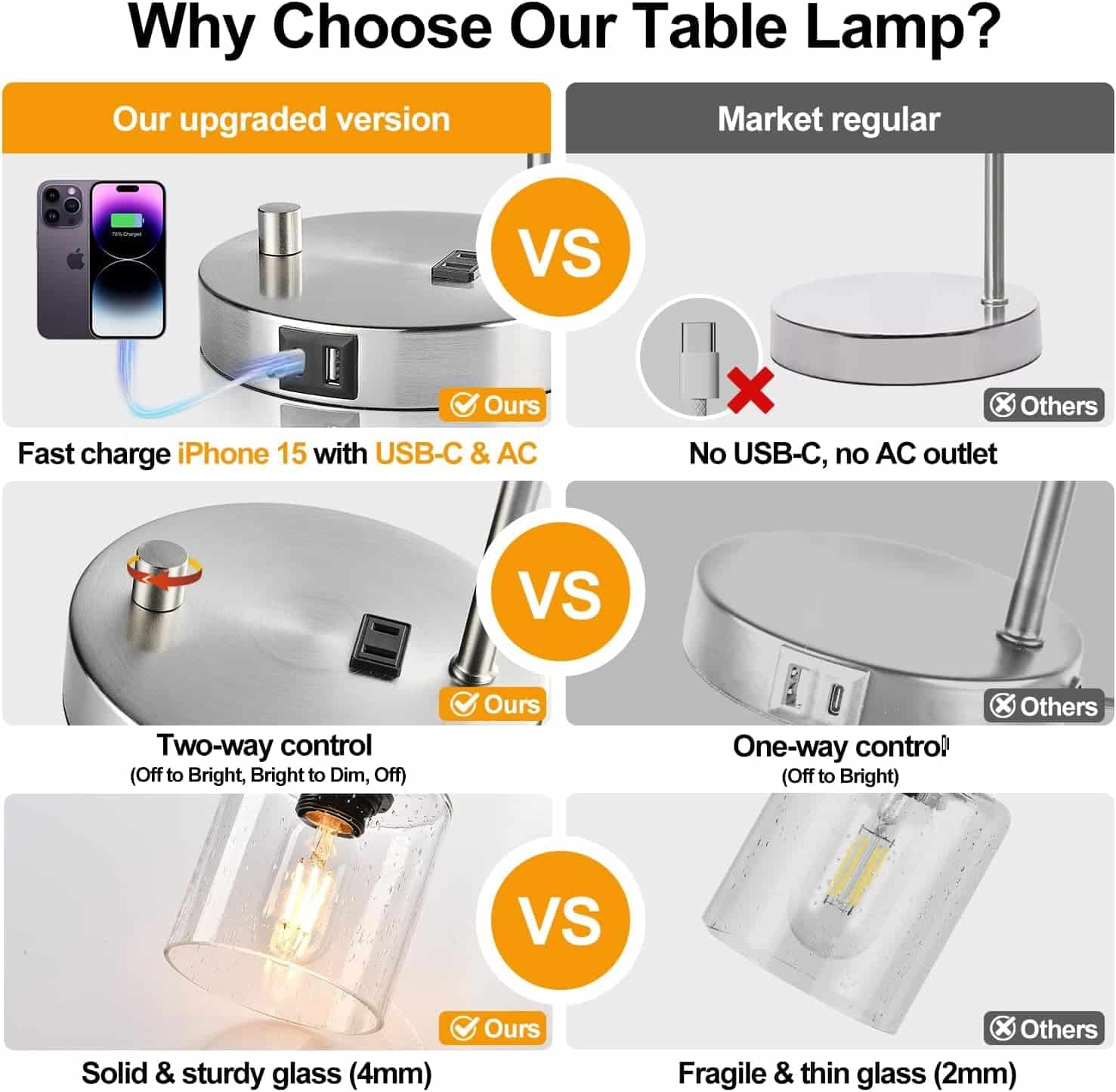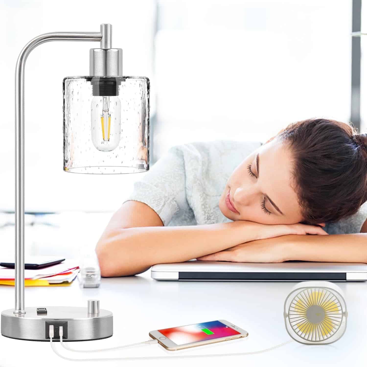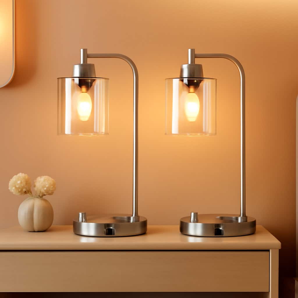 Upgrade your space with an upgraded set of two industrial table lamps that deliver stepless dimming, dual USB charging, and a timeless brushed nickel finish—perfect for bedrooms, living rooms, or work desks.