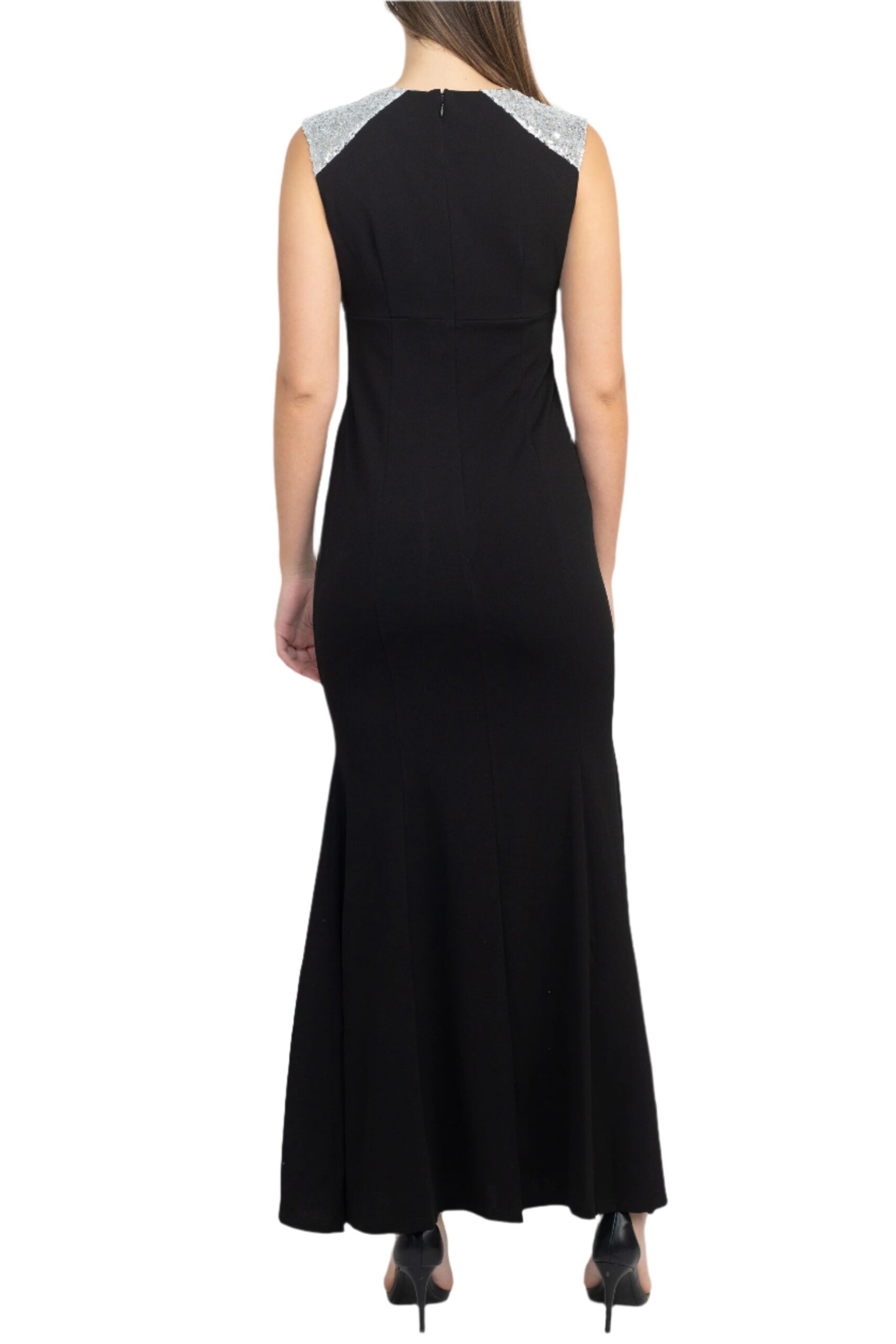 Shine with subtle elegance in this V-neck dress featuring dazzling sequined shoulder accents and a sleek sleeveless design. This wholesale SL Fashion Dress is crafted with a front slit for added flair and a zipper back for a smooth, structured fit. Its clean lines and sparkling details offer a modern take on timeless sophistication.