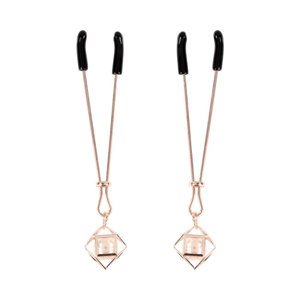 Push all your dom’s buttons for the perfect “punishment.” The adjustable Brat Pearl Nipple Clips offer varied sensations ranging from soft squeezes to pinching pleasures. Adorn your nipples with these beautiful rose gold clips dripping with faux pearl and get ready to turn up the heat.Features & BenefitsRubber-tipped nipple clamps with tension adjustmentsPearl accents for tugging and pullingMaterials: 60% Iron, 20% ABS Plastic, 20% Phthalate free PVC