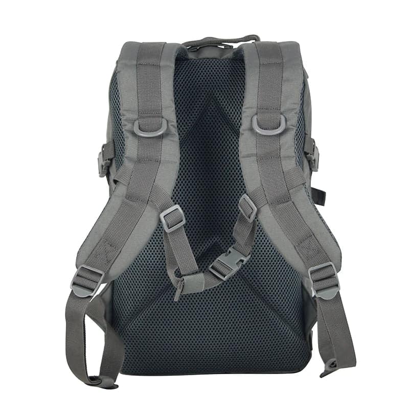 Embark on your next adventure with this Tactical Molle Rucksack, a reliable and versatile companion built for travel, outdoor activities, and daily life. Crafted from durable waterproof nylon, this backpack offers a smart balance between toughness and lightweight portability. Its tactical MOLLE webbing allows you to customize your loadout with additional gear, while its sleek grey design suits both rugged trails and urban commutes.