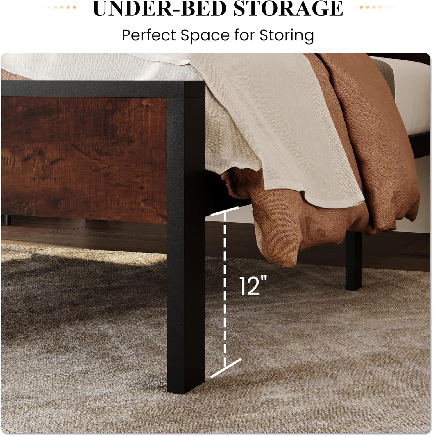 Transform your bedroom with a twin-size platform bed that blends industrial charm with everyday practicality. This smart, sturdy bed elevates your space with a metal frame, a solid wooden headboard, and built-in under-bed storage for a cleaner, calmer room.